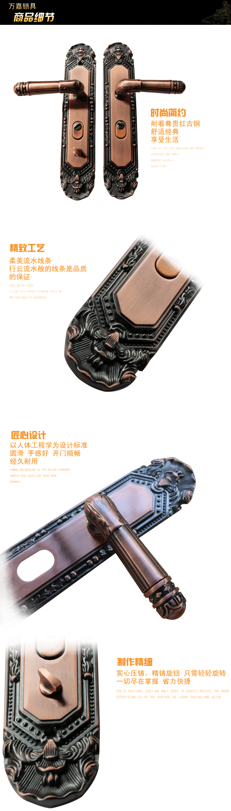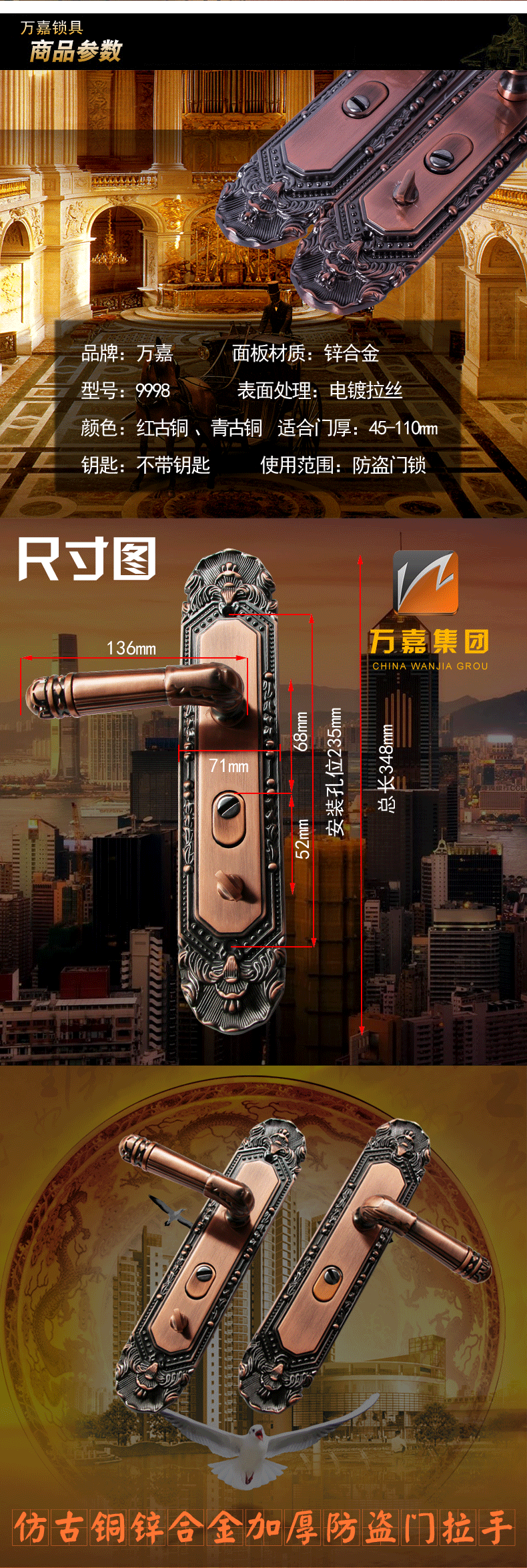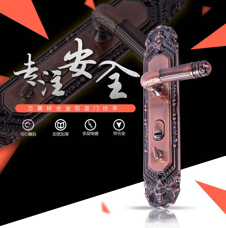 万嘉锌合金防盗门拉手 欧式红古铜拉手大门仿铜把手通-防盗门锁(万嘉锁具旗舰店仅售180元)