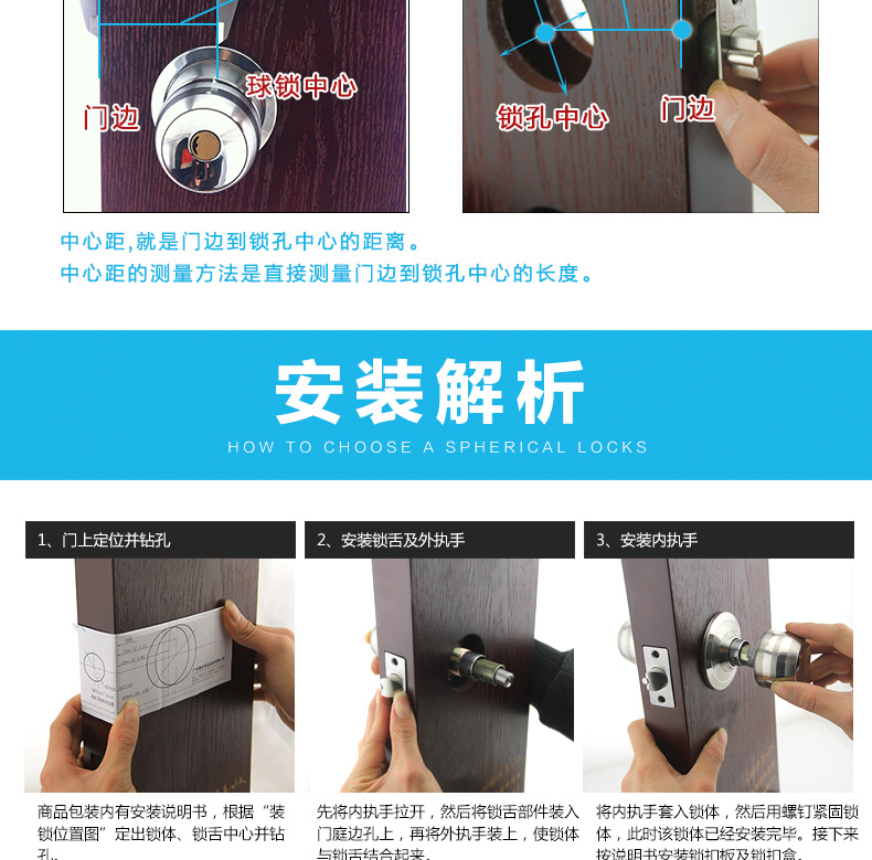 评论晚了,不好意思,门锁在装的过程中都挺顺的,到了最后一步门的背面怎么也装不上,后来好不容易装上了,左右旋动一点也不顺滑,最后没办法只能把旧锁的背面安上去。我这人心好还是给个好评吧!