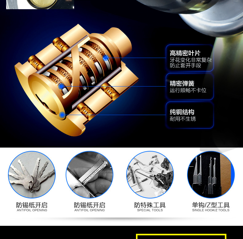 意利原子超B级叶片锁老式防盗门锁外装门锁铁门锁木门-防盗门锁(泰科安家居专营店仅售85元)