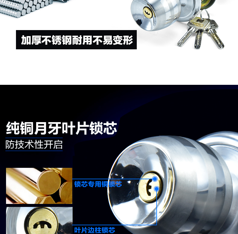 顶御老式防盗门锁外装门锁室内门锁铁门木门大门锁月牙-防盗门锁(泰科安家居专营店仅售45元)