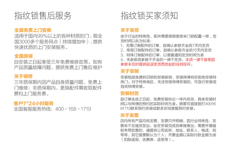 该链接套装中,3年质保以及包安装仅适用于W400指纹锁