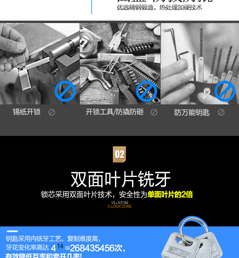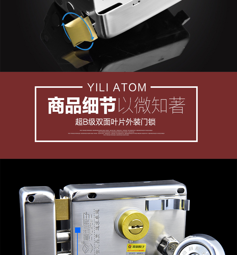 意利原子超B级叶片锁老式防盗门锁外装门锁铁门锁木门-防盗门锁(泰科安家居专营店仅售85元)