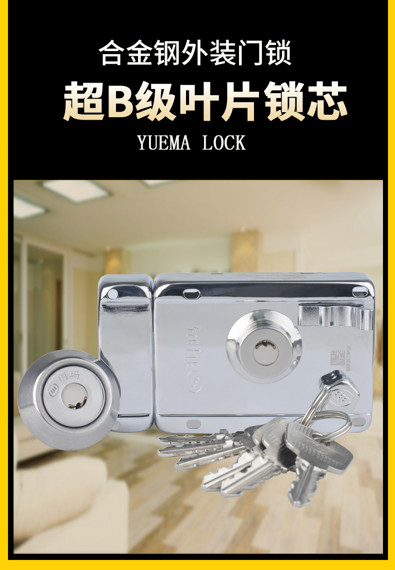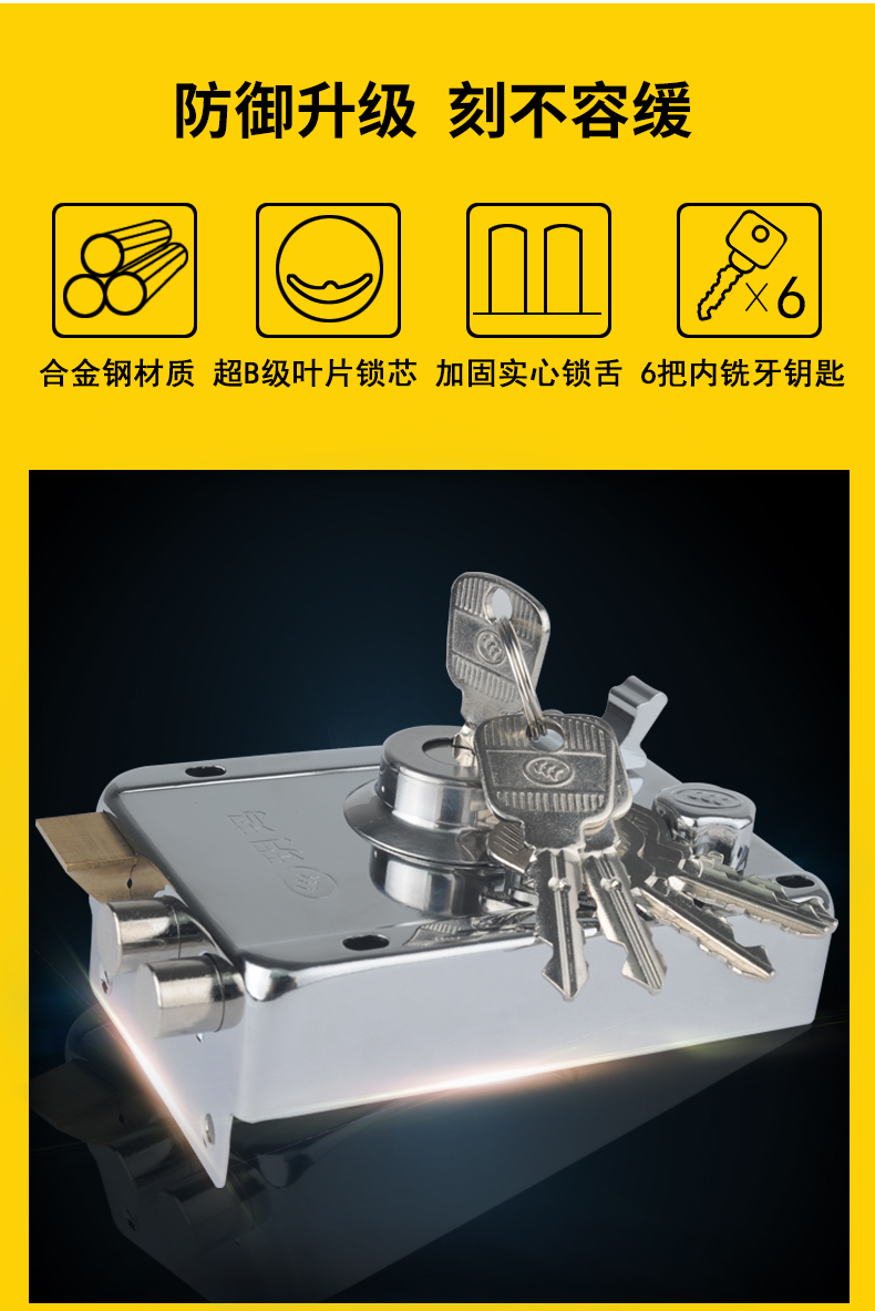 玥玛老式防盗门锁外装门锁室内门锁铁门木门大门锁超C-防盗门锁(玥玛百汇百专卖店仅售109元)