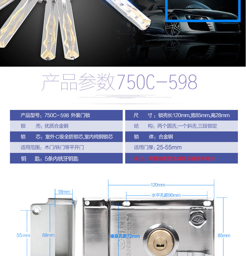 我一直相信品牌的质量,还是一分钱一分货,质量相当好,配的钥匙也非常给力!