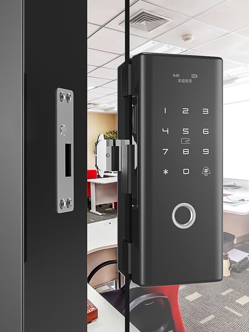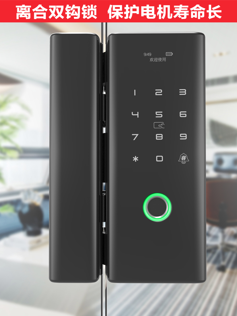 魅锁 玻璃门指纹锁办公室免开孔单双开门APP遥控门-指纹锁(魅锁旗舰店仅售2398元)
