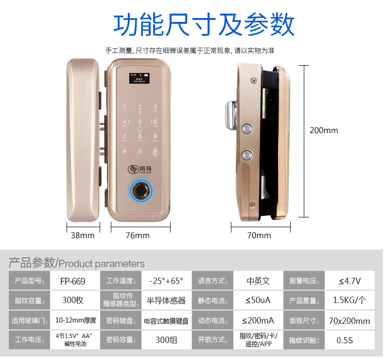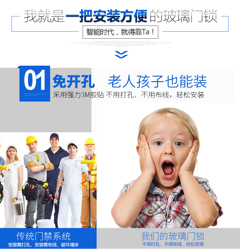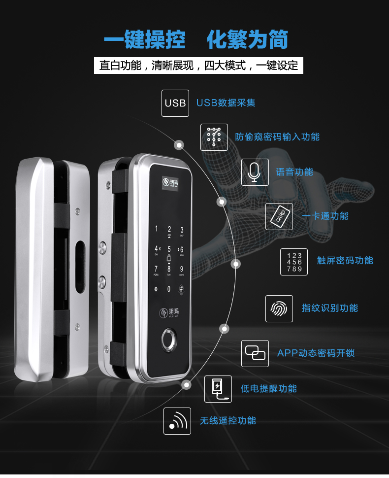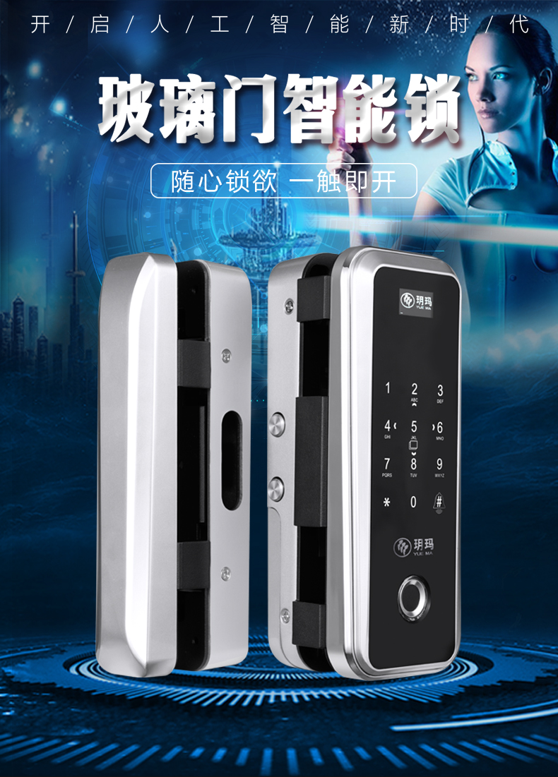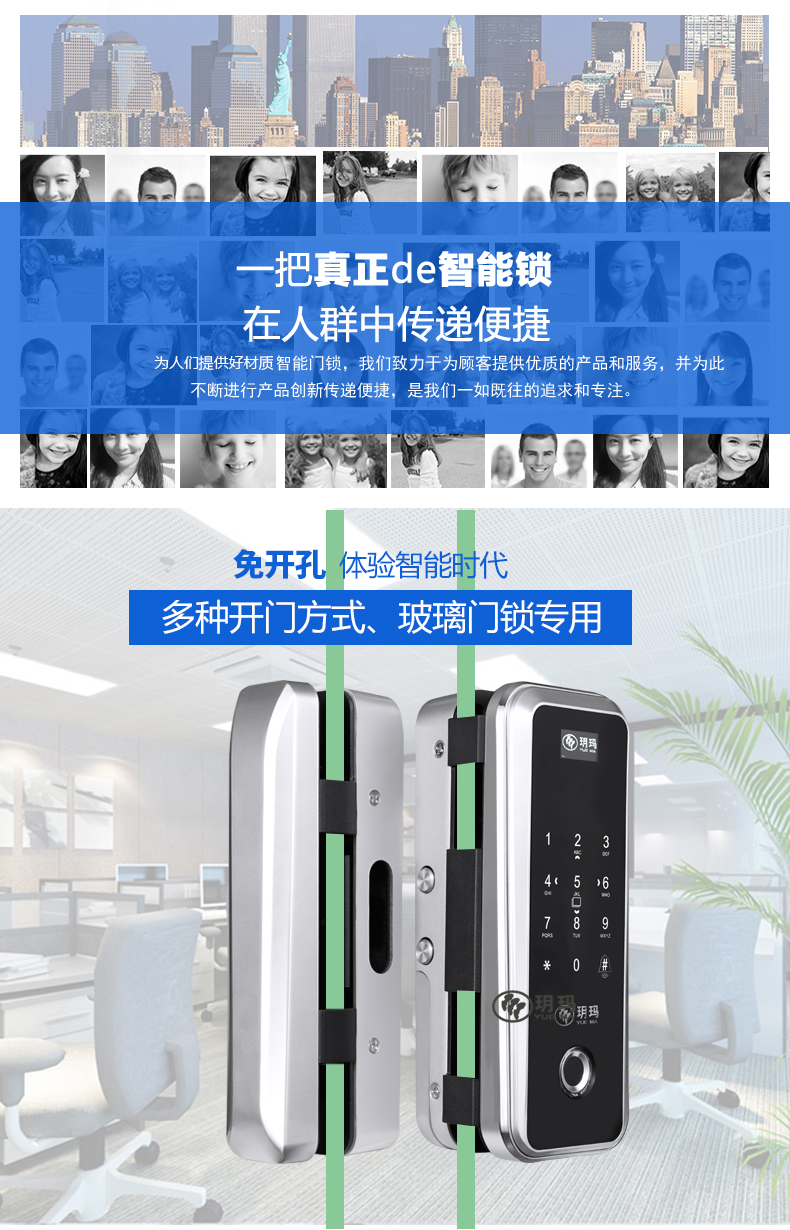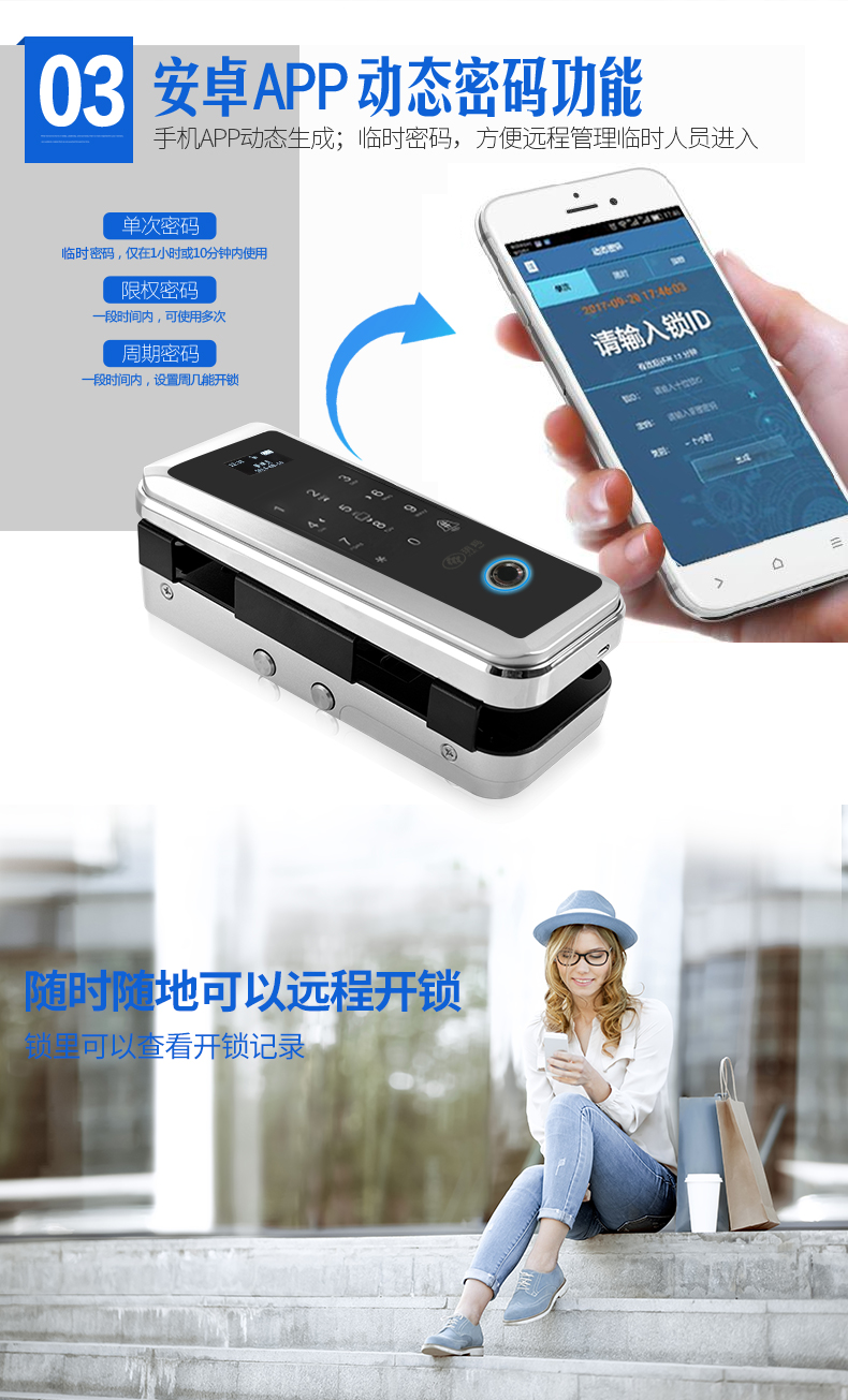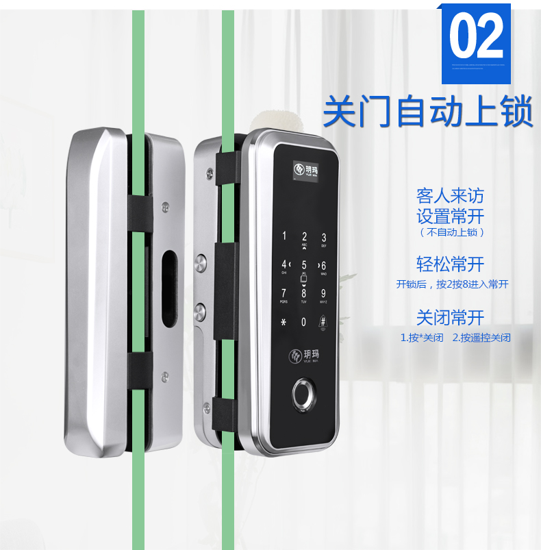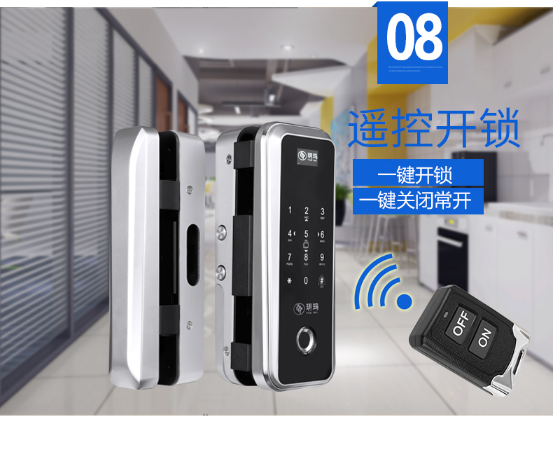 魅锁 玻璃门指纹锁办公室免开孔单双开门APP遥控门-指纹锁(魅锁旗舰店仅售2398元)