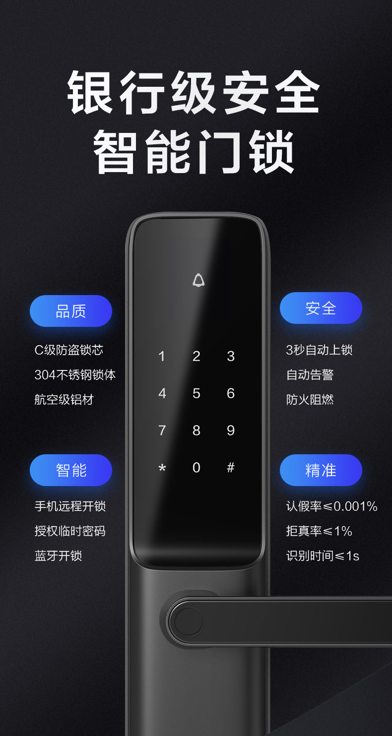 自动滑盖家用防盗门智能密码锁IC卡手机远程锁指纹室-指纹锁(魅锁旗舰店仅售2998元)