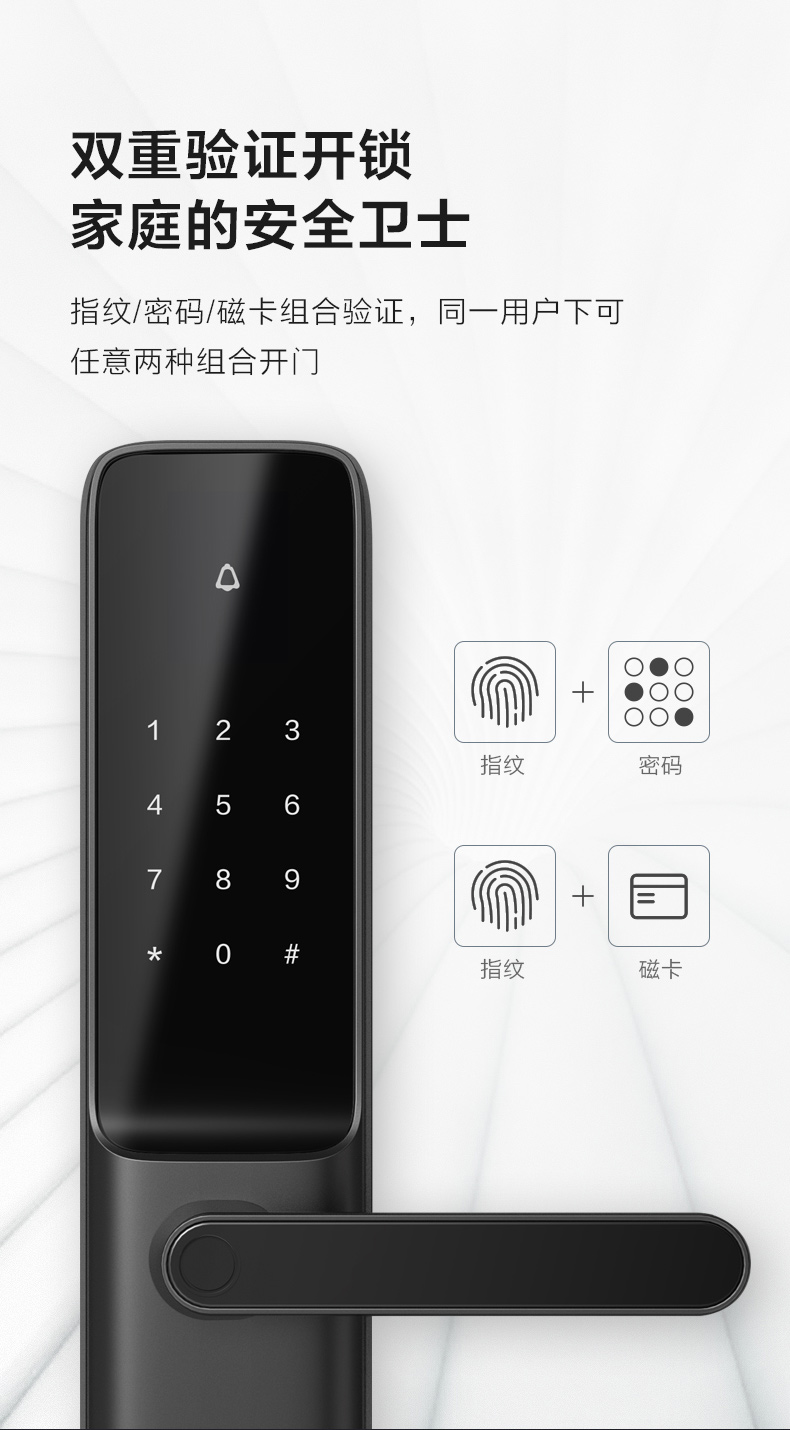 小米小白智能门锁指纹锁智能联动蓝牙门铃防盗电子门锁-指纹锁(百老汇数码专营店仅售1199元)