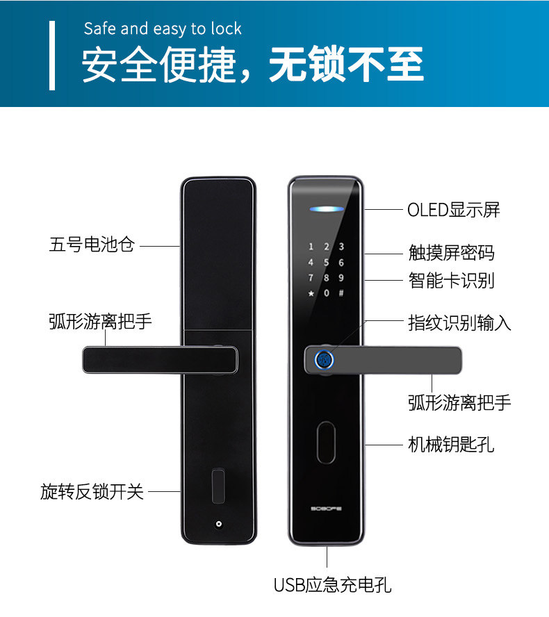 赛福safor2700智能指纹锁家用防盗锁密码刷卡-指纹锁(safor旗舰店仅售1600元)