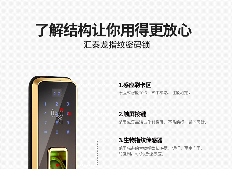 汇泰龙指纹锁家用智能门锁电子刷卡锁酒店宾馆密码锁防-指纹锁(hutlon汇泰龙佩娅专卖店仅售1980元)